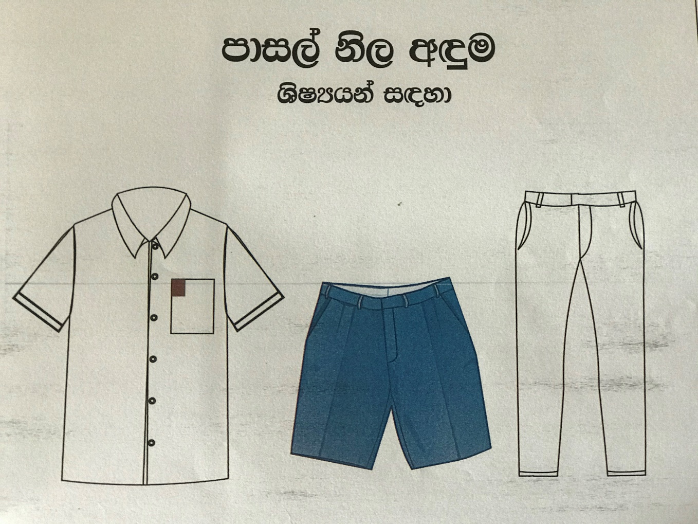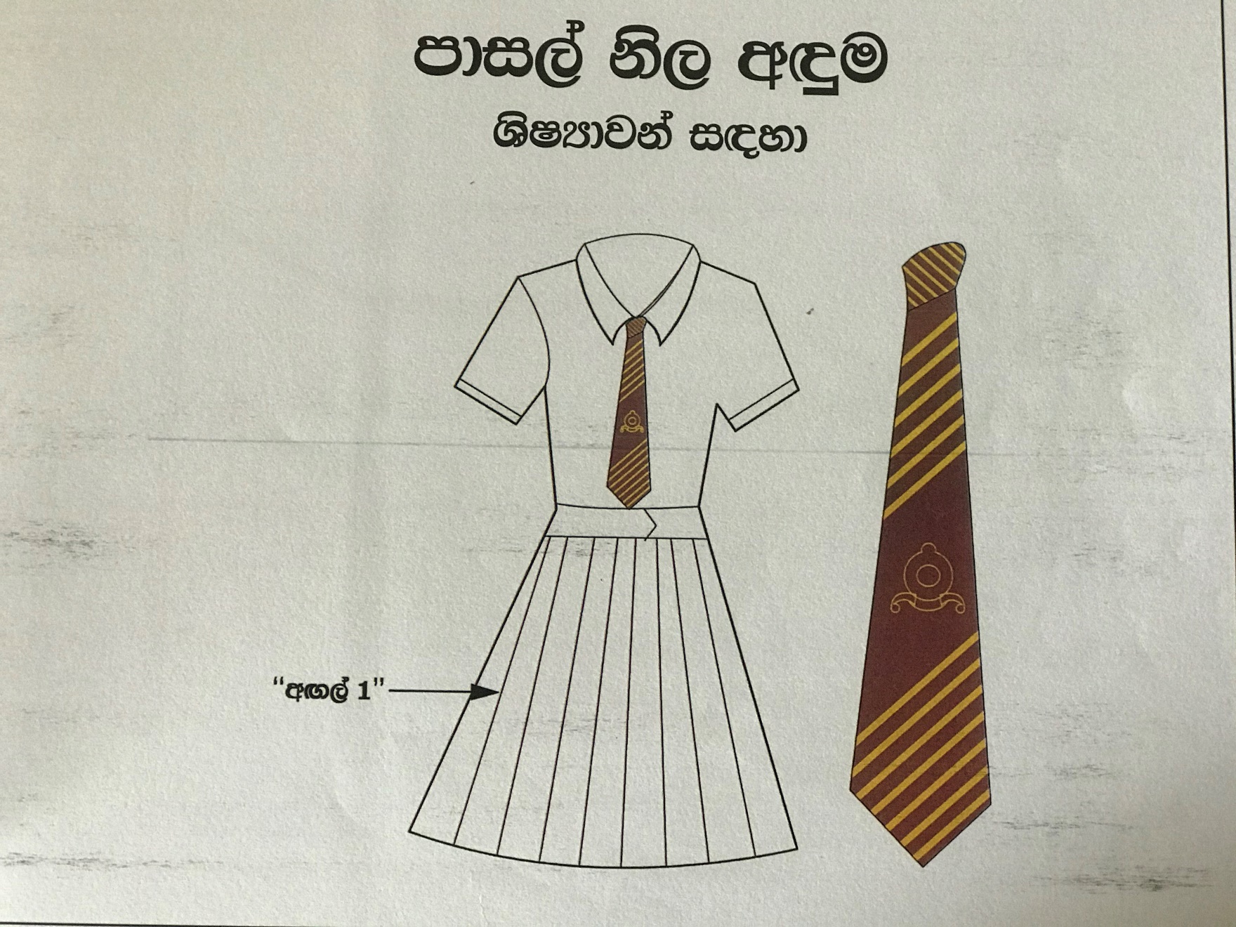 - පාසල් ලාංඡනය සාක්කුවේ දකුණු කෙළවර සම්බන්ධ කර මසා තිබිය යුතුය.